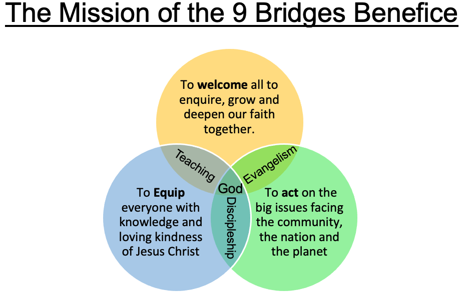 Mission: To put God at the centre of all we do, equipping and welcoming people into a community that actively lives out the gospel.